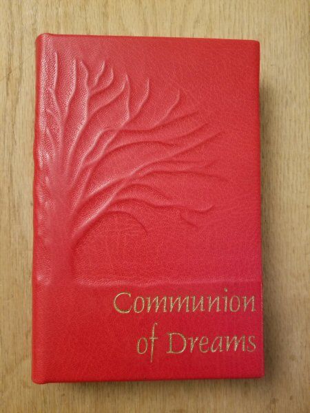 This is a personally hand-bound cloth hardcover copy of Communion of Dreams - but 'backwards'! This was a fluke error by the printer which I decided to bind for the fun of it. The edition was only 13 copies, lettered A-M, with two Author's/Artist's Proof copies. Only six copies remain available.